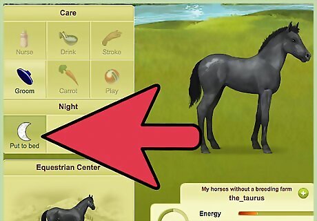 Rest the horse. If your horse's time is about 20:00 or 21:00, put him to bed, then age him.