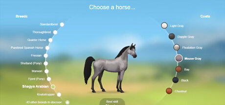 Choose a horse or pony breed that you like. On the right is a box where you can choose your horse. Choose a horse or pony. Then click Next. Try to choose a rare color so that it will be worth more if you sell your horse later. If you want to create something that represents your dream horse, you may never want to sell it, so choosing a rare color is less important. You can choose from lots of breeds, choose a Shetland pony if you wish, then choose a coat color such as strawberry roan or Palomino. The color depends on your horse's breed (for example, Friesians can only be black).