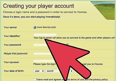 Join Howrse. Go to www.howrse.com. Choose a creative user name that will stand out from the others. Avoid the generic "horselover1234" type user names as many others have ones like that, and people may think you are multi-accounting.