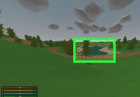 Learn how to fish. Fishing is a quick way to get nourishing food, as long as you have the skill and the patience. Be sure to cook the fish at a campfire, as eating raw seafood will lower your immunity to disease.