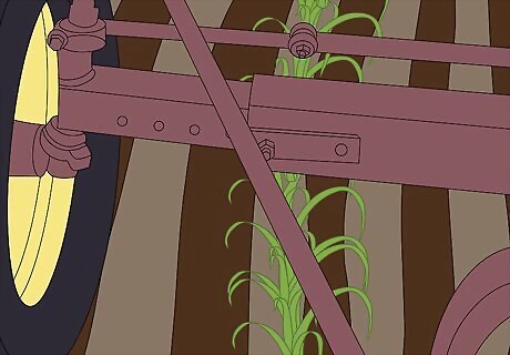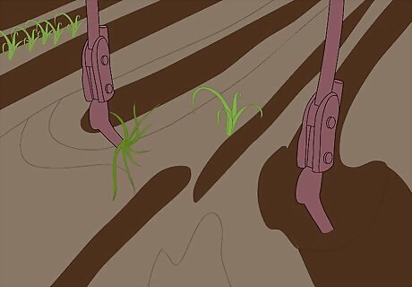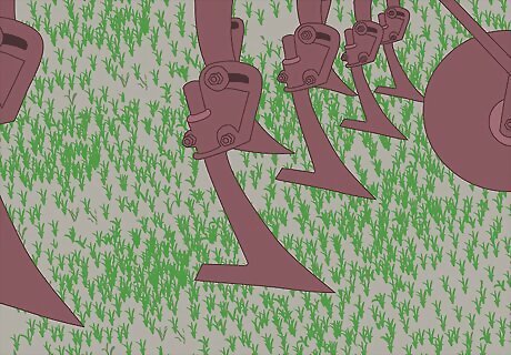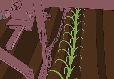Make sure that your plants are large enough. You will want your plants to be large enough that the soil displaced into the furrow will not cover them, but the greatest benefit will be gained when weeds are still small enough to be covered or plowed up (pulled from the soil by the plows) and killed.