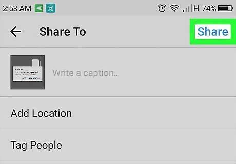 Tap Share. Your new post now appears in your feed. To view the entire panorama, swipe left across the post to access the next square.