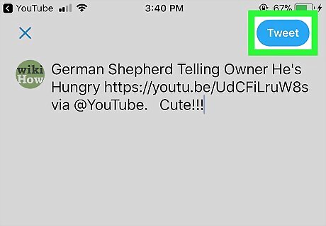 Tap Twitter. It’s the blue icon with a white bird inside. This creates a new tweet containing a link to the video If you’re not signed in to your Twitter account, you’ll be prompted to do so now.