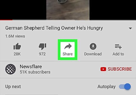 Tap Share. It’s the icon with a curved arrow beneath the video’s title. A list of sharing options will appear.