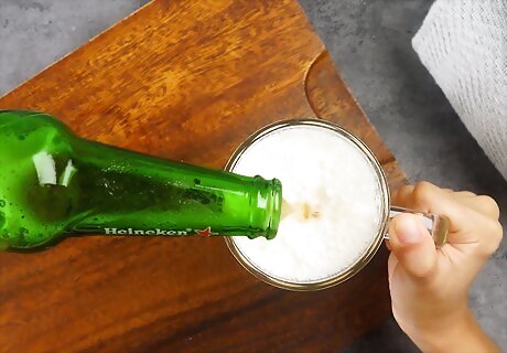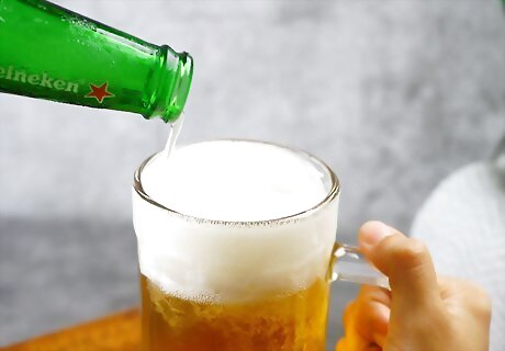 To prevent waste, don’t let the foam overflow. Watch the froth carefully as you pour and stop just before it reaches the lip of the glass. If you’re pouring draft beer, close the tap with a quick, fluid movement to prevent overflow. If you want to fit a little more beer into the glass, let the foam settle for a few minutes. Then, top off the glass. Enjoy the taste and aroma of a perfect, frothy glass of beer!