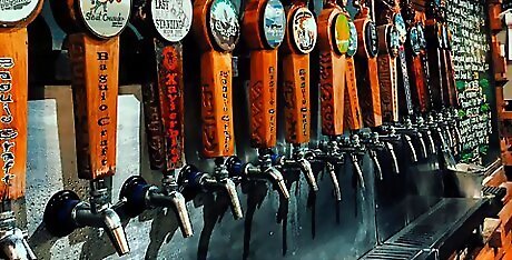 A firm, low grip gives you greater control over the flow. Open the tap completely in one quick, smooth motion. This will give you get a nice, full stream. If you only open the tap partway, the beer will come out foamy, and you’ll end up with more bubbles than beer. Grabbing the top of the handle also puts too much pressure on the faucet, which might make it break.