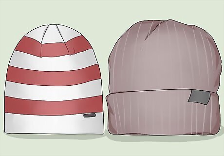 Bring a light hat and a heavy hat. Keeping your head warm is important because it helps your brain stay alert! While you're hiking, you should have a light winter hat to provide some protection against the cold. A heavy one will make you sweat while walking. However, when you stop, you'll want that heavy hat to keep you warm while you rest. Both hats should cover at least the tops of your ears. Look for natural materials like wool for extra warmth. Fleece is also a good choice if wool isn't an option.