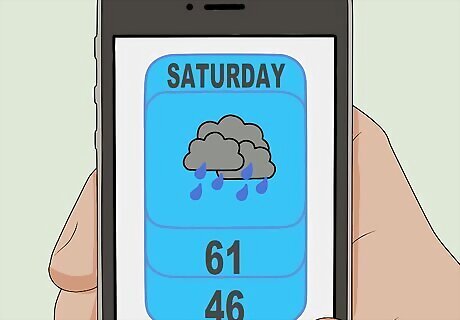 Keep an eye on the weather ahead of time. While winter hiking can be fun, you don't want to be caught in a blizzard or freezing rain. Similarly, harsh winds can make your hike more dangerous. Check the weather forecast, and skip hiking if there's bad weather ahead. Blizzards can create blinding conditions and freezing rain can make you susceptible to hypothermia. Stay home if you need to!