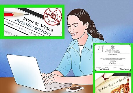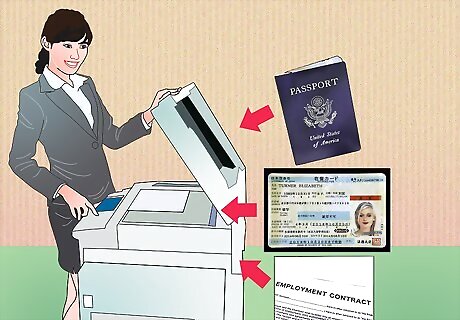 Apply for a working visa yourself. It is possible to apply for a working visa yourself, but you must have a job before you do this, and you must have a college degree. Your visa application needs to be sponsored by an employer, so you can’t get a working visa until you have a job offer. The application process can take two or three months. The visa typically granted to ESL teachers is called the “Specialist in Humanities/International Services” visa. You need information about you and the company you will work for, including: Copies of the company’s registration and financial accounts. Documents detailing your duties, and your contract. Certificates and qualifications that show your education and career achievements. A completed visa application form with two photos. Your “Reason for Invitation Form.” A “Letter of Guarantee Form.”