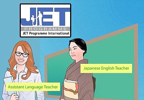 Investigate the Japanese government sponsored JET scheme. One of the best ways to get work teaching English in Japan is through the government’s JET (Japan Exchange and Teaching) Programme. The majority of JET workers will be assigned as Assistant Language Teachers, who will assist and support the Japanese English teachers in the classroom and in extra-curricular activities. The Assistant Language Teachers are there particularly to help the students with their speaking and conversational English. In Japan there is a strong emphasis on reading and writing English, so native speaker Assistants can play an important part in the speaking element. JET contracts last for a year, starting in the summer, and can potentially be renewed for up to four years.
