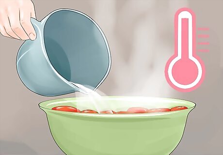 Soak the Piquanté Peppers in boiling water. Boil 3 or 4 cups (750 or 1000 ml) of water in a kettle, then pour the boiling water over the Piquanté Peppers. Allow the Piquanté Peppers to soak for 10 minutes. After soaking the Piquanté Peppers, pour the contents of the bowl through a colander. Allow the Piquanté Peppers to sit in the colander for another 2 to 4 minutes to ensure that they drain well.