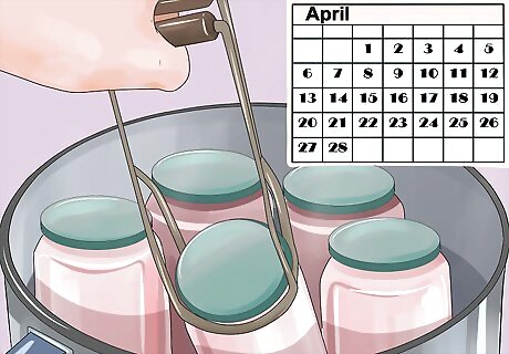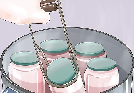 Process the peppers. You can process the Piquanté Peppers in a boiling water canner, but a pressure canner is recommended. For dial gauge pressure canners, process the jars for 35 minutes under 12 lbs (82 KPa) of pressure when at an altitude between 0 and 2000 ft (0 and 610 m). Add an extra 1 lb (7 KPa) of pressure for each additional 2000 ft (610 m) in altitude. For weighted gauge pressure canners, process the jars for 35 minutes under 15 lbs (102 KPa) of pressure when at an altitude of 1000 ft (305 m) or below. Add an extra 5 lbs (35 KPa) of pressure when the altitude exceeds 1000 ft (305 m). When using a water canner: Process the jars for 10 minutes at altitudes between 0 and 1000 ft (0 and 305 m). Process the jars for 15 minutes at altitudes between 1001 and 6000 ft (306 and 1830 m). Process the jars for 20 minutes at altitudes above 6000 ft (1830 m). Let the canner cool until it depressurizes, then slowly open the lid. Remove the jars with a jar lifter and place them on dry dish towels. Let cool for 12 to 24 hours at room temperature. Sealed (indented) jars are ready for storage. Jars that did not seal properly should be stored in the refrigerator and used within several weeks.