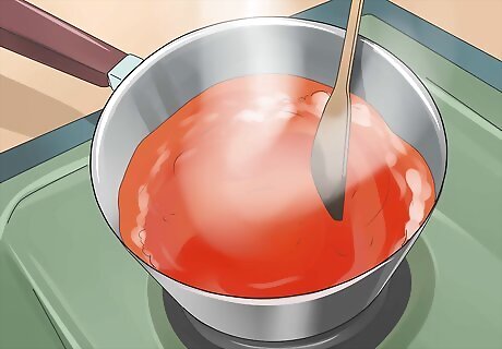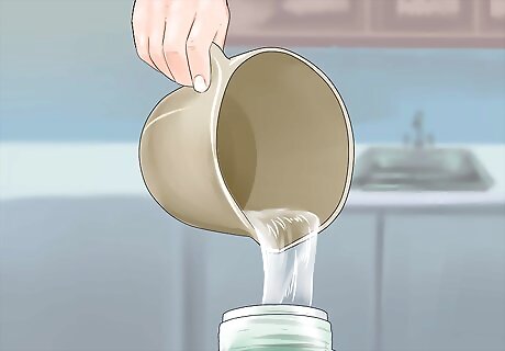 Boil the pickling liquid. Combine 1 cup (250 ml) of water with the vinegar, sugar, and pickling spice mix in a large saucepan. Heat on the stove over medium-high until the mixture reaches a boil. Even though distilled white vinegar is recommended, a wine vinegar, malt vinegar, or spirit vinegar would also work.