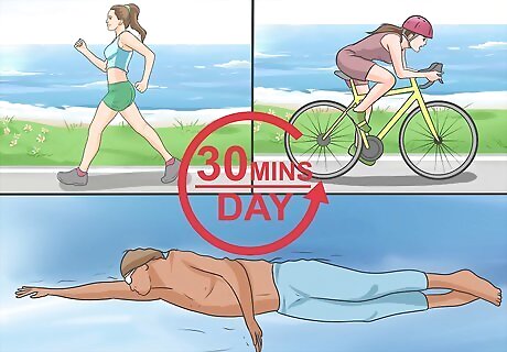 Exercise regularly on your doctor's recommendation. If your doctor doesn't think you're ready for exercise yet, don't strain your heart and risk stroke or injury. But once your doctor approves it, you should get at least 30 minutes a day. Exercise has been found to reduce the risk factors for stroke and the other risk factors associated with stroke. Aerobic exercises like jogging, walking, and swimming are good for reducing blood pressure. Avoid high-intensity activities like weightlifting or sprinting that can cause a rapid BP spike.