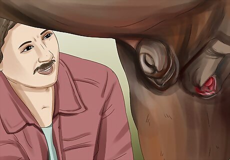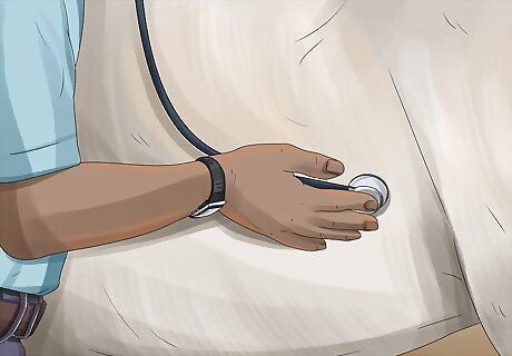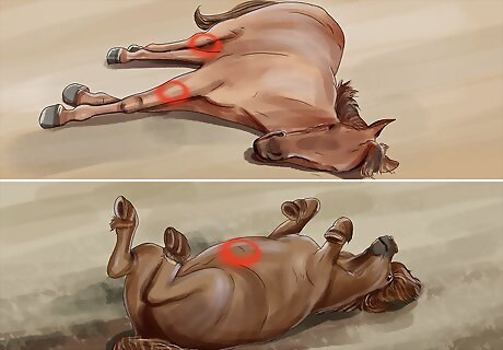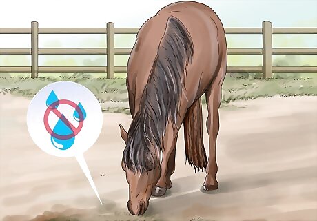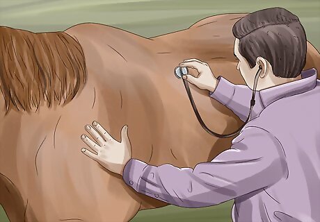 Provide your horse with supportive care. Your horse will likely need antibiotics and additional fluids, which may need to be given through an IV. In some cases, the horse may also need a catheter or a rectal evacuation. Ask your vet to show you how to properly care for the horse. If the horse develops any sores from laying down, you need to clean the wounds often to prevent a reinfection. Move the horse every few hours, and change its bedding daily or as soon as it becomes soiled. Have the vet check on the horse after a few days of treatment.