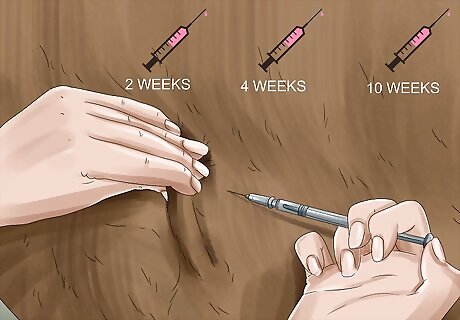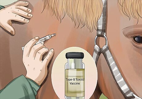 Get your horse vaccinated against a botulism infection. Ask your vet to administer a type-B toxoid vaccine to protect your horse. Although it doesn’t protect against all forms of botulism, it limits your horse’s risk of contracting the illness. The vaccine can be administered at any time after the horse is at least 2 weeks old. Vaccination involves 3 initial dose vaccinations, followed by a single annual booster vaccination. If your horse does get botulism, the vaccine can decrease the severity of the infection.