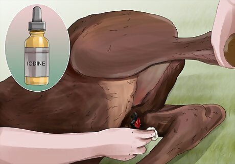 Coat your foal’s navel in iodine right after birth. This will help prevent a botulism infection from entering the foal’s body through the foal’s moist navel. Foals are at risk from infection this way, which is called shaker foal syndrome. It’s best to do this as soon as the foal is born.