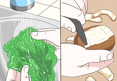 Wash and peel your fruits and vegetables. Washing your produce thoroughly will remove Taenia solium larvae that cause cysticercosis. Place your produce beneath cool, flowing tap water. Move the fruit or vegetable slowly around beneath the tap so that the entire surface is washed. Do not dip your veggies and fruit in a bowl or sink filled with water. This will not clean them adequately.