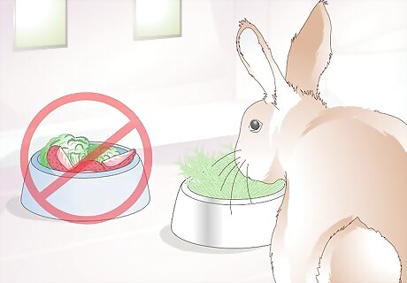 Treat health issues that could lead to uncleanliness. There are some health conditions that lead to a greater risk of a rabbit being unclean around its anus. For example, a rabbit with a urinary infection, or a problem with their bladder, may need to pass urine regularly and is more likely to soil themselves. Likewise diarrhea sticks to fur and is a big risk factor. For both conditions, always seek veterinary attention. If the rabbit has diarrhea, take it off vegetables and fruit, and feed it mainly hay. However, make sure it actually eats the hay or it may starve itself.