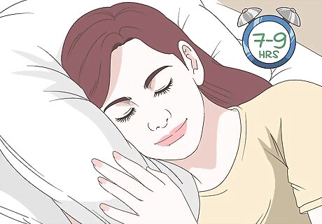 Get 7-9 hours of sleep at night. A full night of sleep is essential to help your skin repair itself. For a more youthful appearance, especially around the neck, make sure that you are well-rested. Set a consistent time to go to sleep and wake up every day. Keep your room cool, dark, and quiet to sleep well. Keep screens out of your room to avoid "tech neck" from looking down at your phone and to get a better night of sleep.