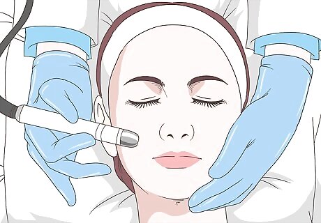 Get a microdermabrasion procedure to temporarily remove damaged skin. This treatment removes a fine layer of skin and can minimize wrinkles and age spots. It works by gently sanding off the top level of skin, requires little preparation or recovery, and takes around an hour. Your provider will come up with a plan for how many sessions you need and how long you should recover between sessions. Microdermabrasion can cause slight redness and stinging. Microdermabrasion usually costs around $100 per session, but can cost more or less depending on where you live and your provider's fees.