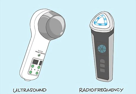 Try ultrasound or radiofrequency therapy to tighten your skin with heat. An ultrasound or radiofrequency treatment will send heat deep into your skin and help it produce more collagen. A doctor will administer the treatment, usually over the course of 2-5 sessions taking around an hour each. The doctor will use a handheld device to apply heat to your skin. Depending on the treatment, you can see results right away, but it may take up to 6 months to see results. These treatments are non-surgical and don't require any recovery time. This is one of the most costly non-surgical skin-tightening treatments, and costs around $500-4000 for 5 sessions.
