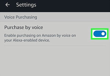 Locate the toggle switch. It will be below “Purchase by Voice.” It should be blue, which means that voice purchasing is on. Tap on the toggle switch with your finger to disable the voice purchasing feature entirely. Once it is disabled, the toggle switch will appear white. You or anyone else will not be able to purchase items using your Amazon Echo once the voice purchasing feature is disabled.