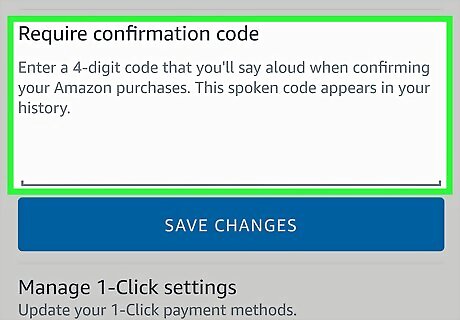 Enter a four-digit passcode. Under “Require Confirmation Code,” type a four-digit passcode into the box. Then click “Save” to save your settings. Make sure the toggle switch under “Purchase by Voice” is on. It will appear blue if it is on.