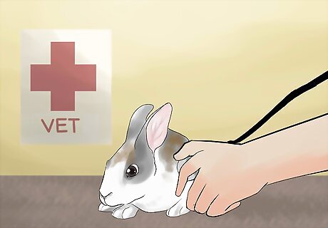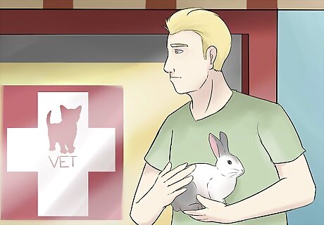 Take your rabbit to be seen by a veterinarian. If you suspect that your rabbit has been poisoned, you should take it to be seen by a vet right away. Make note of what poisoned your rabbit, and bring the item along with you if possible. A veterinarian can give your rabbit emergency care, such as giving it fluids and counteracting the poison, as soon as you get the rabbit to its office, so move quickly. If your normal veterinary office is not open when your rabbit is poisoned, take your rabbit to an emergency animal hospital instead.