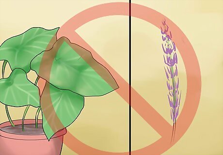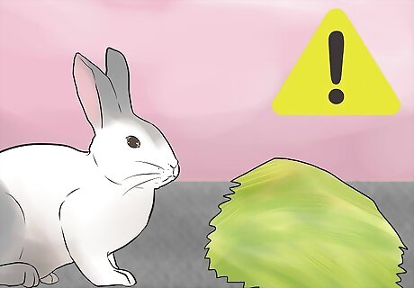 Remove plants that are toxic to rabbits. There are some houseplants that are toxic to rabbits if they eat them. These can include amaryllis bulbs, delphinium, elephant ear, iris, lupine, narcissus, and philodendron, among many others. If you let your rabbit roam outside in your yard, make sure that there are no plants there that could be toxic to it. Unfortunately, rabbits do not instinctively stay away from plants that are bad for them. Outdoor plants that are toxic to rabbits include ivy, rhubarb (which is commonly grown for cooking), and foxglove.