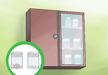 Place medications out of reach. All of your medications should be kept away from your rabbit. A rabbit that comes across a pill bottle may be tempted to chew on it and the animal may ingest what is inside. Even common over the counter medications, such as general antibiotics and NSAID pain relievers, can be poisonous to a rabbit. Keep all of your medications in a latched cabinet so that rabbits and any other roaming animals in your home cannot get at them.