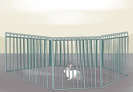 Keep rabbits in their cages. The easiest way to prevent poisoning is to keep your rabbit contained in its cage. Keeping a rabbit in a space made just for it will assure that it does not get into trouble and accidentally ingest something that could poison it. You will need to be sure that you always keep your rabbit's cage securely fastened and that there are no ways for your rabbit to get out of the cage. Inspect the cage regularly for damaged areas that could lead to injury or escape. You can also use a puppy pen to limit your rabbits area to run and play, since it is important to let your rabbit out daily for exercise. This will make it easier to supervise your rabbit as well.