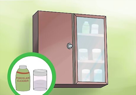 Keep household cleaners and poisons locked away. Rabbits can be poisoned from a variety of household products, including common household cleaners and insect and rat baits. Keep all of these products away from your rabbits and make sure that there is no way they can access them if they escape their cage. Consider putting cleaning products in a high cabinet. If they are kept in a low cabinet it might be accidentally left open and the rabbit could sneak inside.
