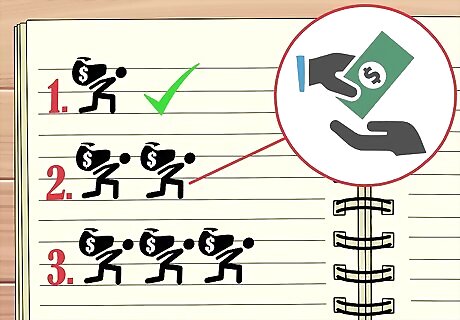 Pay off the first debt. Use any additional money you have each month to begin paying off the first debt. You may consider creating a budget for yourself to save money or perhaps taking on a part-time job. However you come up with the money, save as much as you can and put it all towards that first debt. When you've paid it off, celebrate! You've earned it.