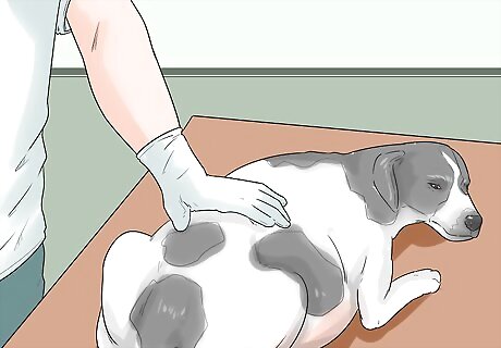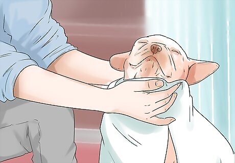 Wipe up the dog after she gives birth. It can help to wipe up the dog with a damp cloth after she finishes giving birth, and then pat her dry. Also, change the bedding after she gives birth, providing fresh blankets for her and the pups.