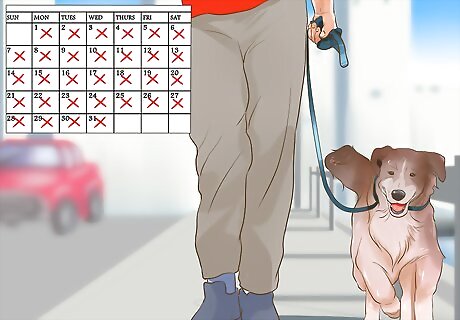 Walk the same route each day. An easily disoriented dog will not have a good sense of direction. When you take your dog out for a walk, consider walking the same route each time. This way, your dog may not get so easily disoriented and distressed when outside. Keep your dog on a leash during the walks so it doesn’t wander off when it gets disoriented.