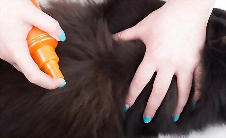 Spray your cat with flea and tick treatments once a month. You can use a spray can or pump bottle. Choose an effective product recommended by a vet that is safe for the age of your kitten. Keep in mind that these treatments contain different ingredients and they are not all safe or effective. Do not spray the product on your cat's face. To apply the spray/pump product to the face you should spray the product first onto a standard cotton ball. Then dab the coated cotton ball around the cat’s eyes and ears. Don’t soak the cat with the product, but make sure you coat all areas of the animal. This is a good method for cooperative cats, but if they don’t like it, you might try the collar or topical method. The pump bottle may be a better idea as the spray can has a hissing sound that may alarm the kitten or cat. Make sure you’re in a well ventilated area.