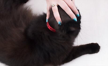 Fasten on a flea and tick collar. To know if the collar is fitting correctly you should be able to slip in two fingers between the collar and cat’s neck. Use scissors to cut off any excess portion of the collar once it’s fitted correctly so the kitten or cat doesn’t chew it. Look at the area under and around the collar periodically for signs of irritation. If you notice a problem then you probably need to use another product such as the topical or shampoo. These can be effective if your kitten or cat is cooperative and you can get the right fit. Usually these last several months. Avoid collars with the following ingredients: amitraz; permethrin; organophosphates on cats.