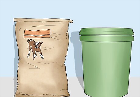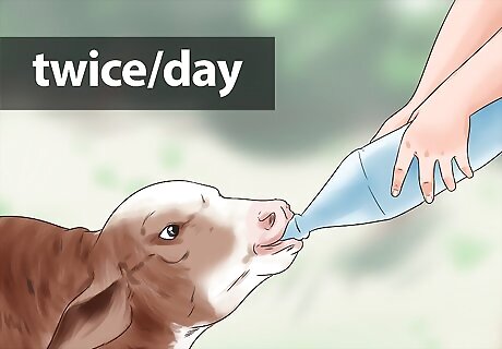 Stock up on feed. It's best to purchase your feed before you purchase the calf so that you have food ready for when you bring the calves home. Bottle-raised calves require milk-replacer specially formulated for calves. Do not purchase milk from the grocery store because it does not have the same nutritional content and good bacteria for the calf's digestive system as raw milk does. You can quickly kill a calf with pasteurized milk, even if it's homogenized. A bottle calf will need to be started on grain and hay fairly quickly, usually within a week or two of its life. Once you get it on this feed, you can start, over the following weeks, progressively feeding less milk replacer (gradually increasing the water to powder ratio) less often. Usually you do not need to buy colostrum because a calf needs colostrum in the first few hours of its life. If you buy a calf that is a day or two old, the colostrum will be ineffective. You are better off with milk replacer instead. Weaned calves or those that are pre-weaning can be fed small amounts of milk replacer that is watered down. Calves at this stage (they are often around 3 to 4 months of age) can be fed grain, hay and will even graze on pasture. Dairy calves typically need to be "grained" a lot since they do not have the same ability to convert grass to muscle and energy like beef calves do. If you have beef calves though, it's recommended to feed less grain and more hay/pasture. If the pasture and hay is in very good quality, you can limit the grain to only a few times a week. Note: Too much grain for beef calves can put too much fat on them when they need more protein over energy to grow--not get fat. If you have to buy hay, the price varies as the amount does too. If you make your own hay then you will save a lot of money in the long run. Grain usually costs $350.00 per ton. Don't quite need that much? They sell small 50 lbs bags for $15. Prices very by location. Grass costs nothing if it grows wild. If not, you're going to have to buy some grass seed ($15.00 at your local store; prices vary). Milk replacer cost about $45 to $55 dollars per 50 lbs bag (prices may vary)