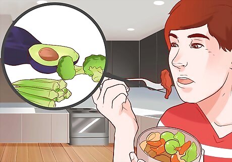 Eat lots of fresh fruits and vegetables. Several of these foods have been shown to be good natural sources of glutathione, but their GSH content is destroyed by overcooking or processing. To get the most glutathione out of your fruits and veggies, eat them fresh whenever possible. Fruits and vegetables high in glutathione include broccoli, avocado, okra, spinach, cauliflower, Brussels sprouts, collard greens, mustard greens, cabbage, asparagus, grapefruit, apples, oranges, and cherries (though there are many more). Despite the benefits of these foods, you should always strive for a balanced diet. Overdoing it on the fruits and vegetables can create problems for your digestive system if you do not also get enough dietary protein.