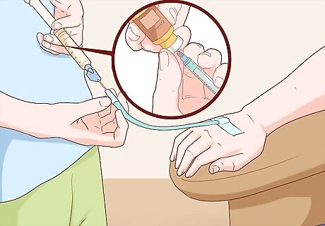 Get glutathione injections. This type of glutathione supplementation is only recommended for individuals with medically diagnosed illnesses known to be helped by glutathione. Injections are done intravenously and should not be attempted by anyone but a licensed medical professional. The most well-supported use of glutathione injections is relief from the side effects of chemotherapy in cancer patients. This is something that an oncologist (cancer doctor) must prescribe. No other purpose for glutathione injection is broadly accepted by the medical community as effective; however, some people believe it to be useful for lots of other illnesses, including Parkinson's disease, diabetes, some forms of anemia, atherosclerosis (hardening of the arteries), and male infertility.