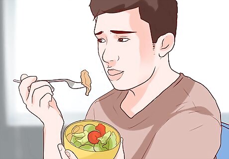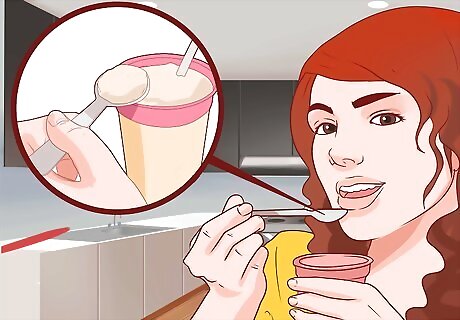 Eat lots of lean protein. Three amino acids contribute to glutathione's makeup (so-called "precursors"): cysteine, glutamate, and glycine. Lean protein sources, especially meats, contain naturally high levels of these amino acids, especially cysteine (which is also the most important one). If your diet includes lots of these lean proteins, your body will produce more glutathione. High-quality sources of lean protein include poultry and egg yolks, milk, and yogurt. To get as much cysteine from your diet as possible (and therefore increase your body's glutathione production), you should try to eat at least two servings of lean protein per day.