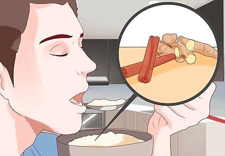 Consume spices that boost GSH. Some spices include chemical compounds (such as curcumin) that promote glutathione production. These include turmeric, cinnamon, cumin, and cardamom. Eating foods that already contain high levels of multiple glutathione-promoting spices can help you to further boost your glutathione without much extra effort. Many curry dishes fall into this category. Cinnamon can be added to many desserts or sweet foods to add a flavorful kick while also contributing to higher glutathione levels. It's a win-win!