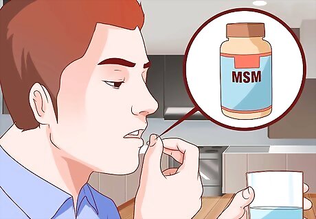 Take MSM supplements. MSM or (Methylsulfonylmethane) is a mineral compound that provides a source of sulfur, which is necessary for producing both ALA and Vitamin B1, which in turn increase glutathione levels. If you are not getting enough sulfur in your diet, ask your doctor about supplementing with MSM. Sulfur is what gives glutathione its antioxidant abilities, so any other method you use to boost glutathione will be useless if your sulfur levels are too low. MSM is just one way to obtain sulfur; it can also be acquired from eating several types of raw fruits and vegetables. MSM is also believed by some people to provide relief from pain and some other symptoms of arthritis and various other joint conditions; however, there is not much scientific research to support this.