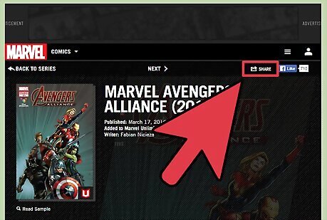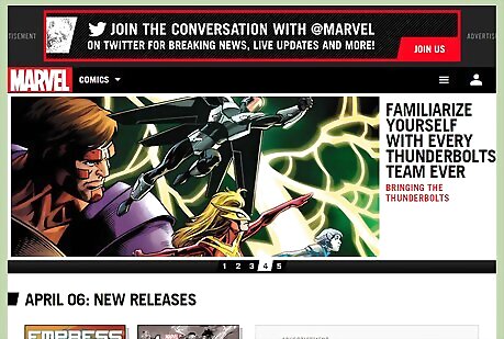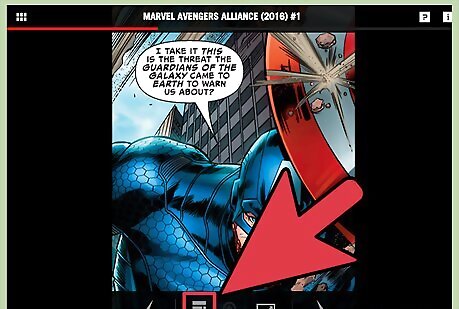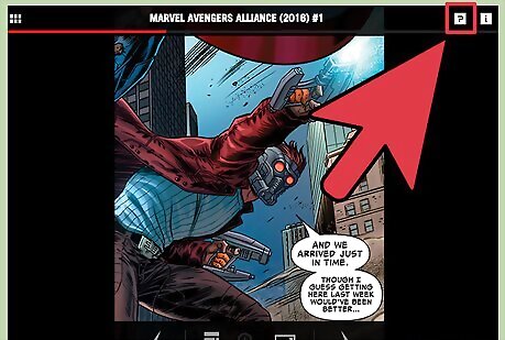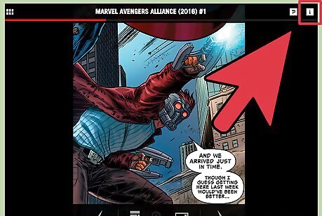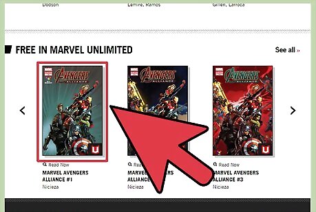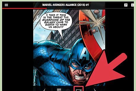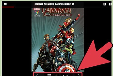 Select the Marvel comic you want to read. You can do this in 1 of several ways: Click the "Browse Digital Comics" tab to browse by Marvel character. You can select from a pictorial display of characters, an alphabetical list subdivided by initial letter, or type the character name into a search field. Choose one of the Marvel comics listed under "Recommended Digital Comics." Click "Read Online" under the cover graphic of the digital comic you want to read. If you don't see a title you like, click either the left or right arrow to scroll through the display until you see a title that interests you. Choose one of the options under "Classic Digital Comics Must-Reads." Click on an option name or "Read More" under the short description for a more complete description and list of available titles. Click on the title or cover graphic to read the comic. Choose one of the options under "Most Read Digital Comics." Click on the title of the comic you want to read. Choose one of the options under "Digital Comics Released This Week." This section functions the same way as the "Recommended Digital Comics" section.