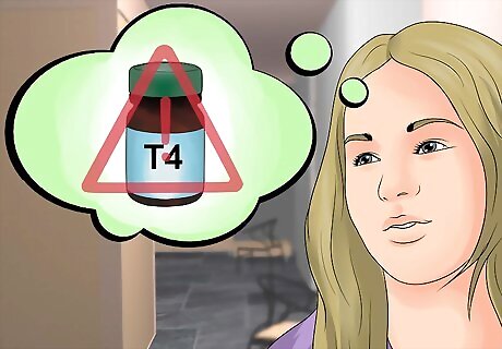 Stay alert about possible medication complications. Everyone is different, so you must pay attention to your body. You may have to return to the doctor if complications arise, or if you start to take other medications that interfere with your T4 medicine. Pay attention to a return or worsening of symptoms. This may mean that you aren’t taking enough medicine. Other issues that may arise with taking T4 can include taking medicines that prevent your body from absorbing T4 like calcium-based antacids, iron tablets, or medications that contain estrogen. If you notice a weight gain or loss of 10 or more pounds when you aren’t trying to, it may indicate an issue with your thyroid medication.