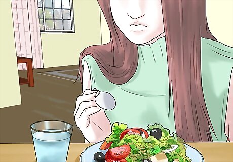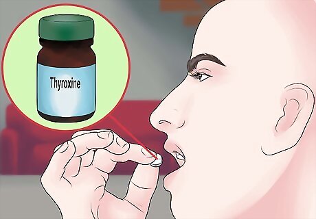Be prepared to start taking thyroid medicine. Once you have been diagnosed with hypothyroidism, most doctors will put you on medication. Hypothyroidism is a condition that cannot be cured, so hormone replacement is the only way to help the body regulate TSH and T4. Your medication will be pills containing T4, also known as thyroxine. You must be careful to take the exact dosage prescribed. Taking too little of the medication will make your hypothyroidism persist, and taking too much can make you develop the opposite condition, hyperthyroidism. Symptoms of hyperthyroidism include rapid heartbeat, inability to sleep, nervousness, increased appetite, and feeling shaky.