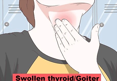 Check for a swollen thyroid. A swollen thyroid, also known as goiter, can make your neck look enlarged. Look at your neck in a mirror and feel it with your hands to check for swelling.