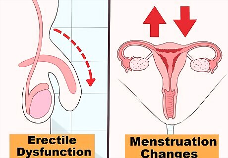 Watch for erectile dysfunction and changes in menstruation. As noted, the hyperthyroidism caused by Graves' disease throws your hormones out of balance. In turn, that can cause changes in your sex drive and menstrual cycle. For instance, you may have a longer or shorter period, or you may have a heavier or lighter flow. Symptoms of erectile dysfunction include reduced libido and difficulty getting and keeping an erection.