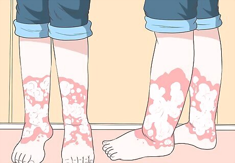 Check for patches of thick, red skin on the top of your feet and shins. This condition is known as Graves' dermopathy, and it is a relatively rare symptom. Still, you should keep an eye out for it, as it can manifest as a sign of Graves' disease.